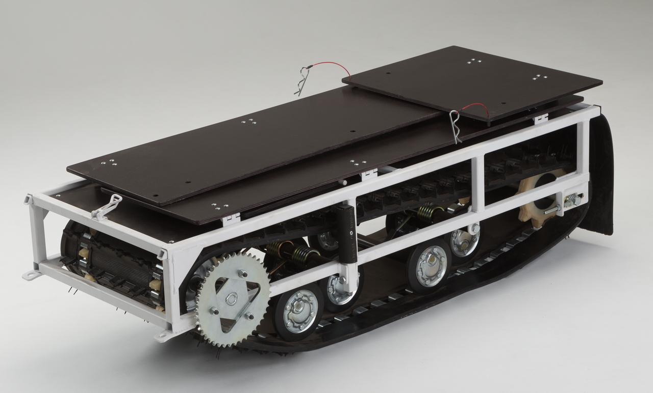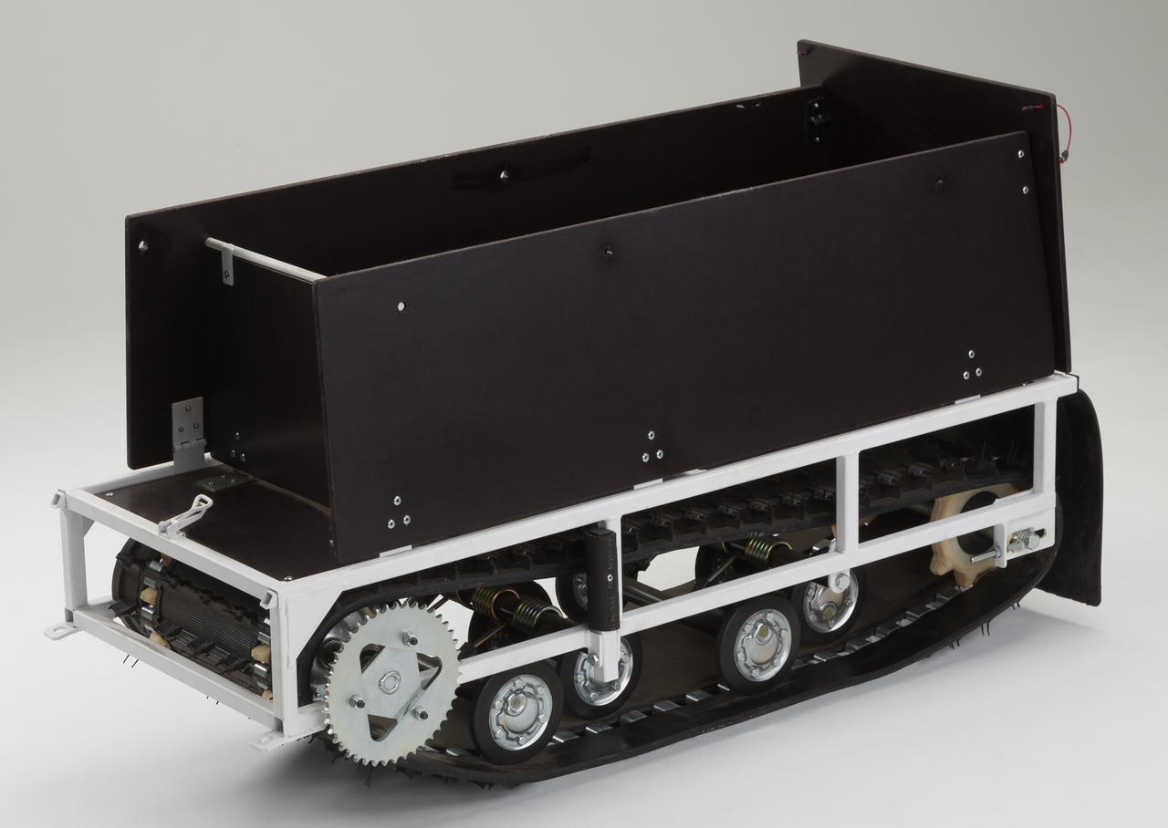 Крутящий момент от двигателя передается на гусеницу цепью.