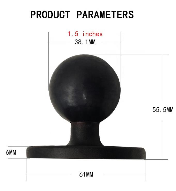 Круглое основание содержит обрезиненный шар размером 1,5" (38 мм.) и содержит предварительно просверленные отверстия.