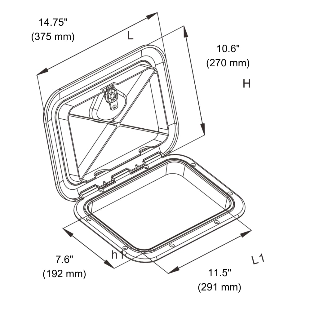 Оптимальный размер: Размеры люка составляют 270 x 375 мм (14,75 x 10,6 дюйма), что делает его идеальным для различных морских применений. Этот люк разработан с учетом ваших потребностей, будь то доступ к отсекам для хранения, зонам технического обслуживания или другим частям вашего судна.